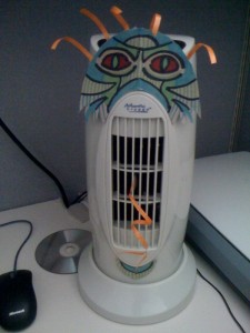 Cause a regular air purifier wouldn’t be proper for this office! Our artists love to customize not just the cubicles, but also the humdrum items within. I suppose it’s nice to make the space feel like home, eh? Makes me think of lockers in high school… I’ve got WAC on the brain. 😛