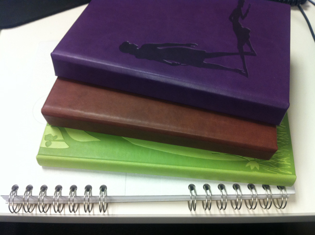 It shows the progression of the exclusive journal (only in the Collector’s Edition Fan Favorites tin). I think there was little chance of us ever going with the white book on the bottom, but it helped us select a bit more solid sort of book. Odd binding and the desire for more pages helped push us from the green version to the sleek looking brown. But of course this is HI, so we gave it a royal color (matching the tin and games) and put the famous silhouette on the front. And wham! We’ve got our journal.